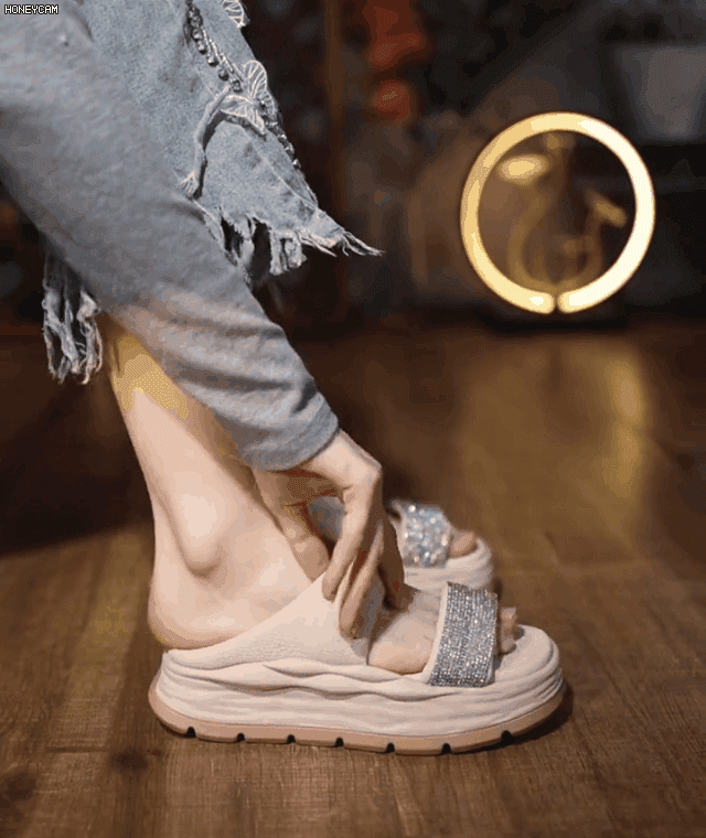 รองเท้าแตะเพิ่มความสูงติดเพชรกระพริบ