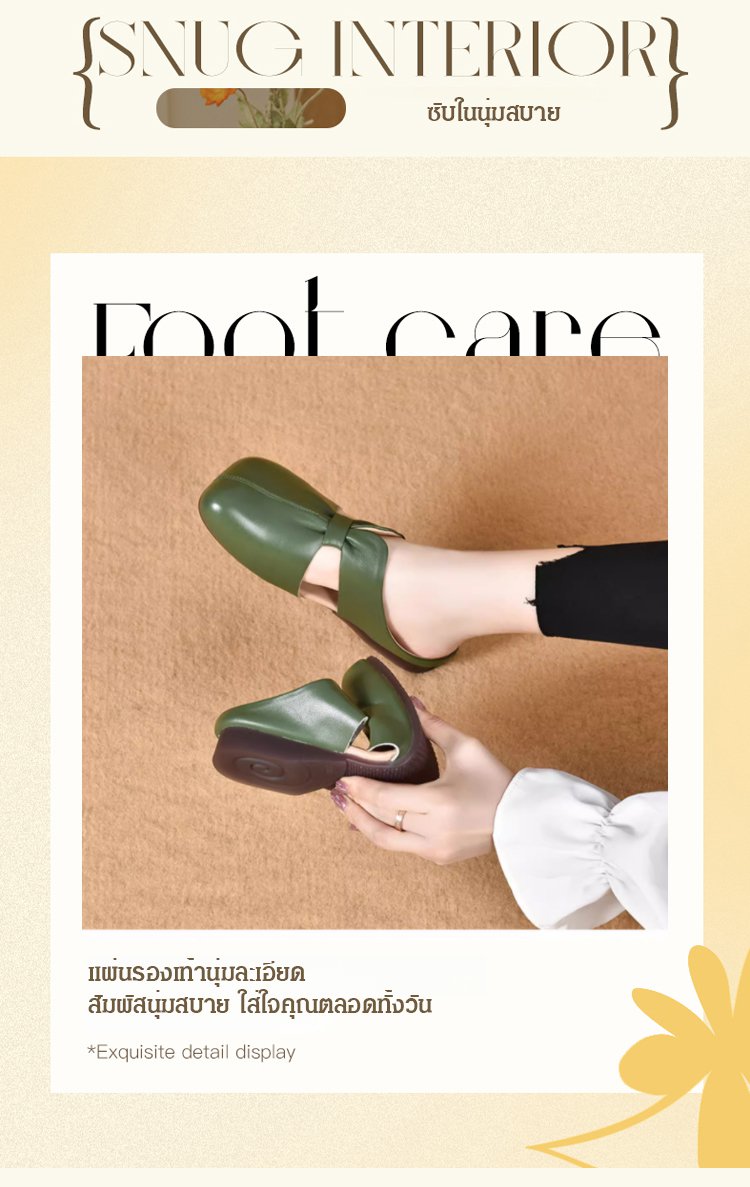 【หนังวัวชั้นแรก】รองเท้าแตะผู้หญิงแบบหัวปิด เปิดส้น